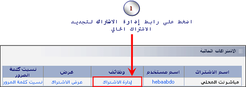 1. اضغط على رابط إدارة الاشتراك الموجود في الجزء الاشتراكات الحالية.